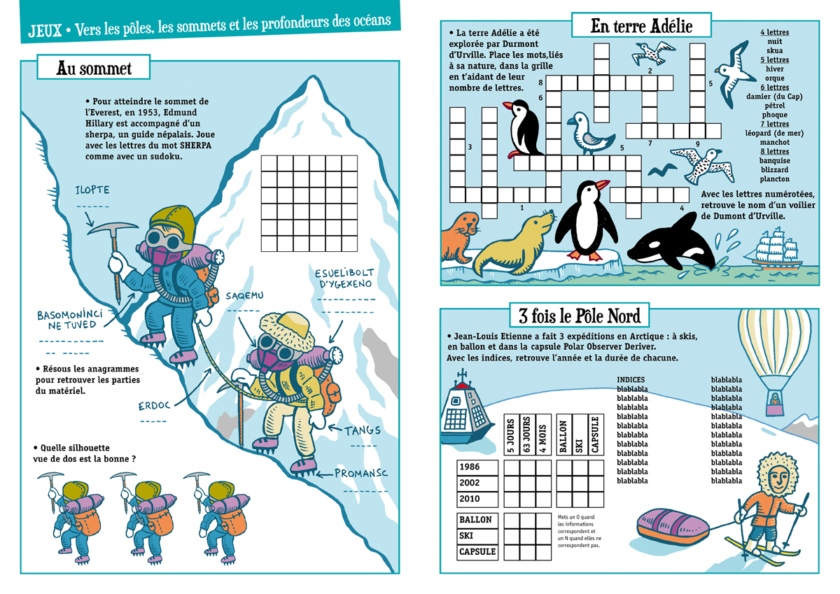 Jeux illustrés pour un hors-série de Mon Quotidien sur les explorateurs.