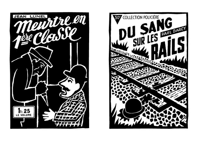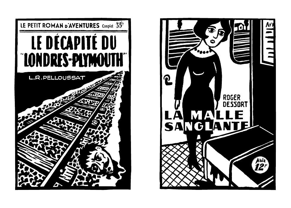 Ça y est, le cordel n°4 est chez l’imprimeur ! Clin d’œil à la littérature populaire : je suis parti de couvertures de polars à deux sous (à deux sous le « roman complet » !), situés dans l’univers des trains bien sûr. J’adore les titres, les illustrations et les typos improbables (et délectables) de ces bouquins.