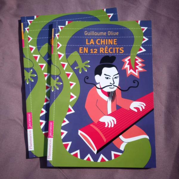 Fuxi au corps de dragon, jouant de la cithare traditionnelle chinoise.
