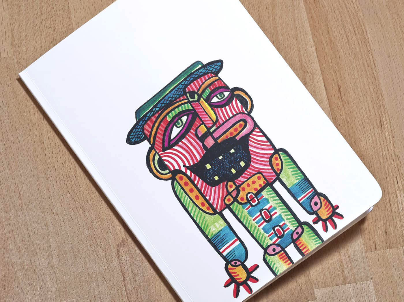Un bonhomme au feutre, sorti d’un carnet… à voir chez Ultrashop !