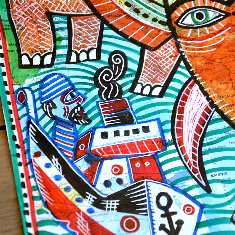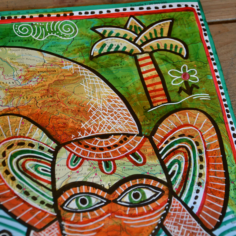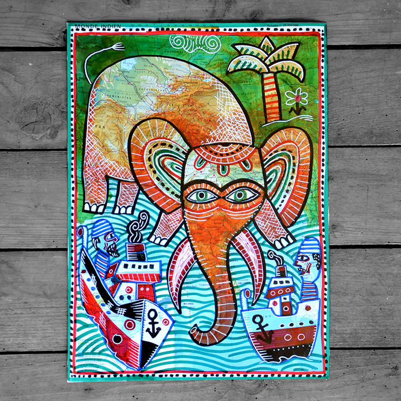 Encore inspiré par la carte… La tête de l’éléphant épouse la forme de l’Inde.