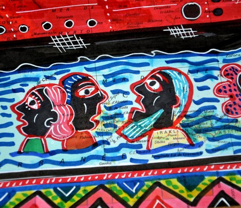 Marqueurs et posca sur carte de géographie.