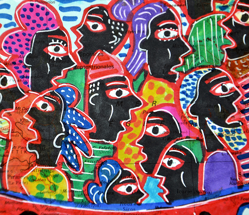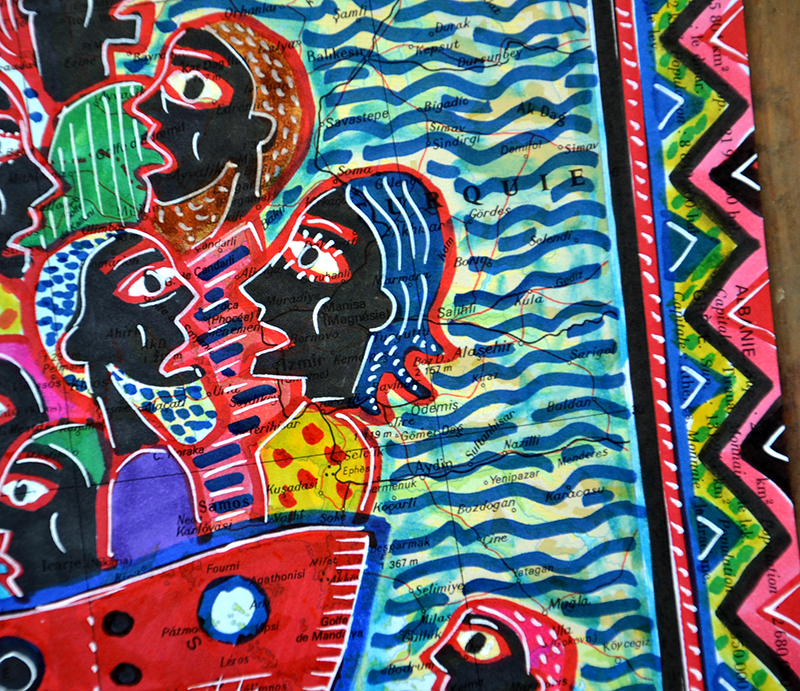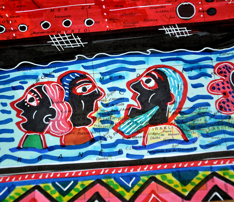 Marqueurs et posca sur carte de géographie.