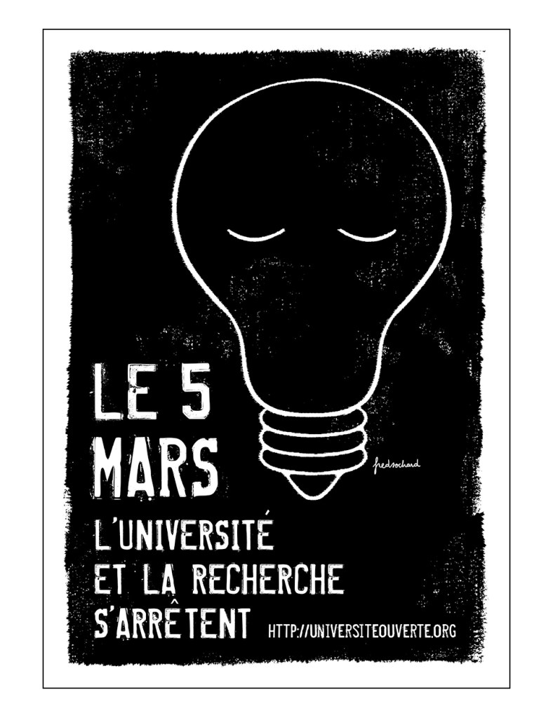 Pour Université Ouverte, une image simple et facilement déclinable pour dire : « Le 5 mars, l’université et la recherche s’arrêtent » contre le projet de réforme des retraites.