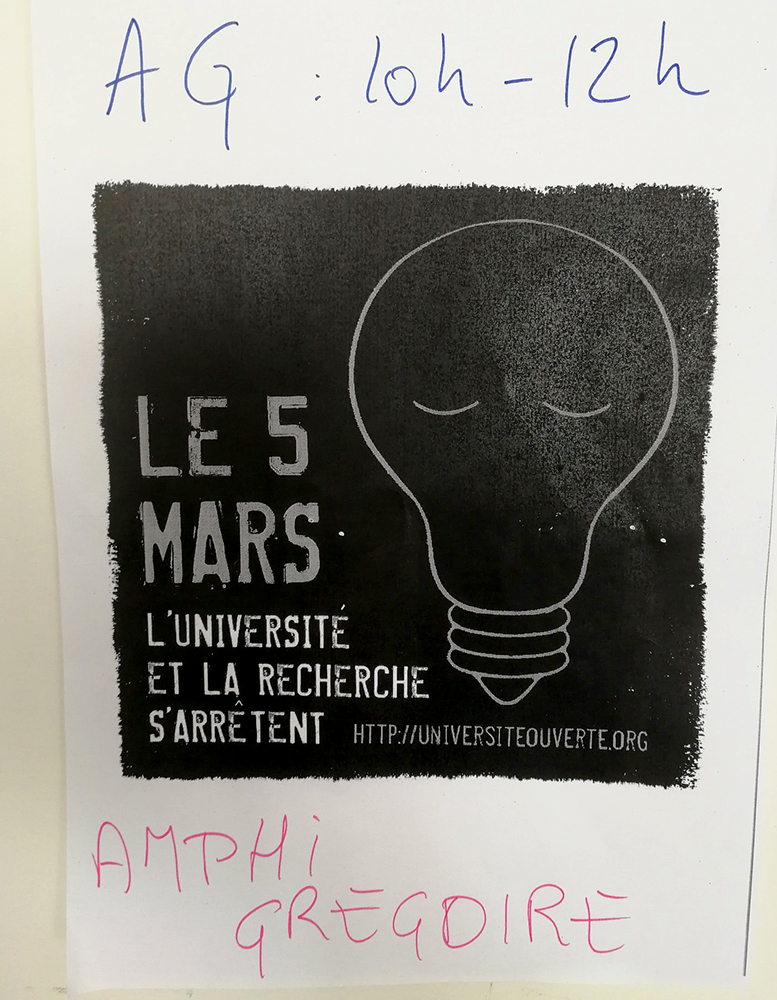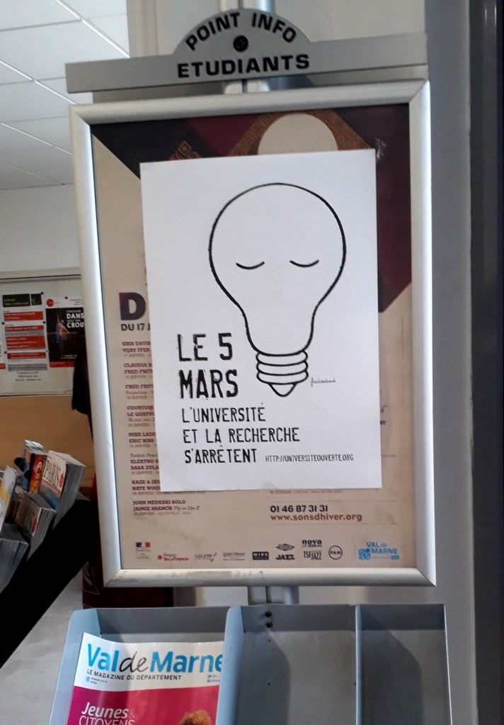 Après le florilège de squelettes, voici le florilège d’ampoules à…Gennevilliers, Rouen, Rennes, Poitiers, Roscoff, Aix-Marseille, Bordeaux, Toulouse, Amiens, Marne-la-Vallée, Sénart, Champs-sur-Marne, Cergy, Paris, etc.
