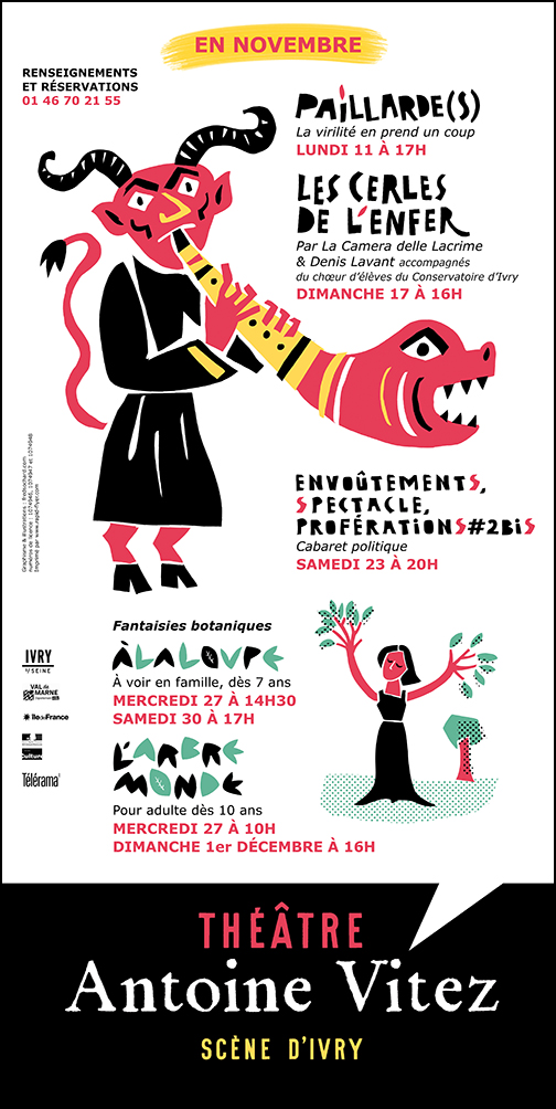 THÉÂTRE ANTOINE VITEZ SCÈNE D’IVRY // Plaquette de saison 2019-2020 (graphisme, illustrations, typographies), supports de communication, affiches.
