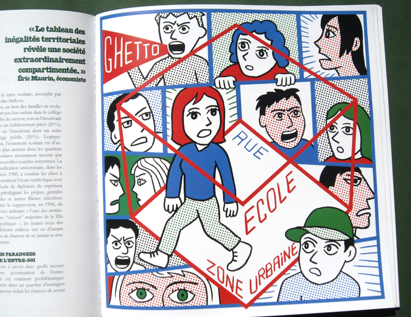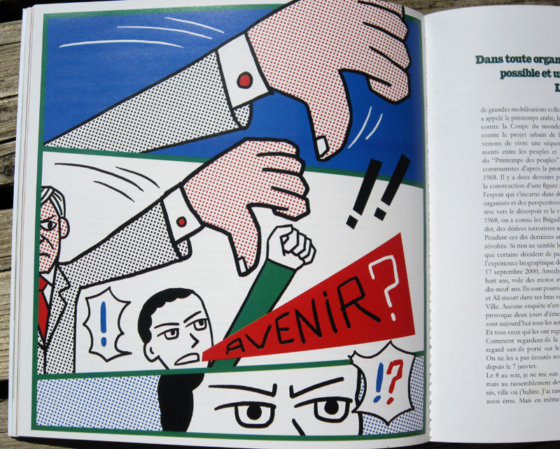 Prenez les codes du manga : trames, mises en page dynamiques, bulles, contours noirs, personnages… Ajoutez-y une bonne dose d’imagerie politique : mai 68, avant-garde russe, révolution culturelle chinoise…. Incorporez le tout dans la maquette de Sébastien Bergerat. Servez chaud ! Vous avez un accompagnement, que j’espère digeste, pour le dossier du dernier Regards.