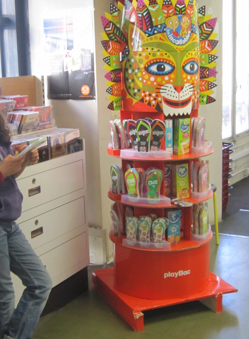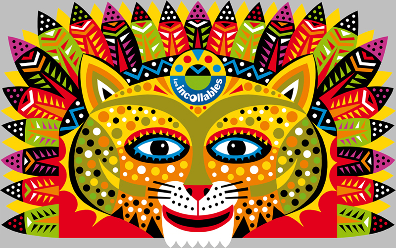 Le félin est arrivé en librairie ! Un « masque » dessiné pour une PLV des éditions PlayBac, sur laquelle on retrouve la tong des Incollables.
